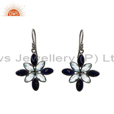 Oxidized Sterling Silver White Moonstone And Smoky Quartz Flower Dangle Earrings
