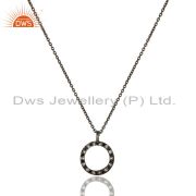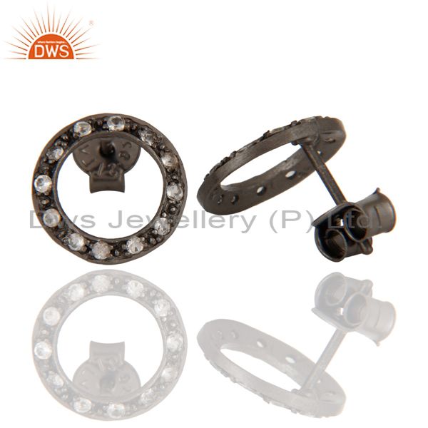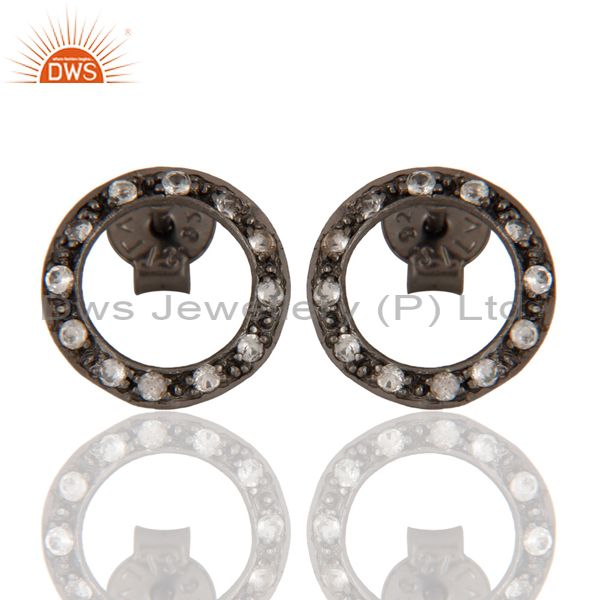 Oxidized Sterling Silver White Topaz Gemstone Open Circle Stud Earrings