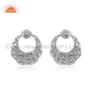 Oxidized Texture Sterling Plain Silver Earrings Jewelry For Girls
