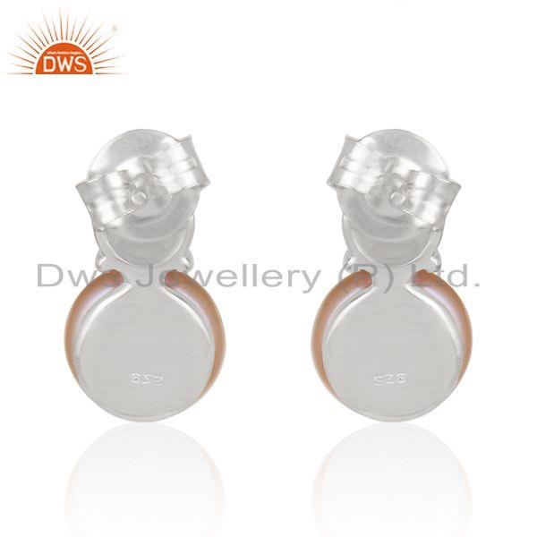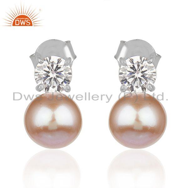 Party Wear Zircon And Pink Pearl Gemstone Fine Silver Stud Earrings