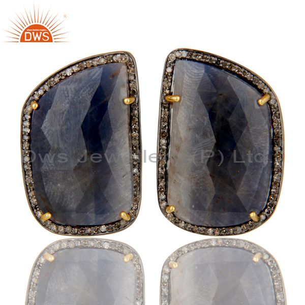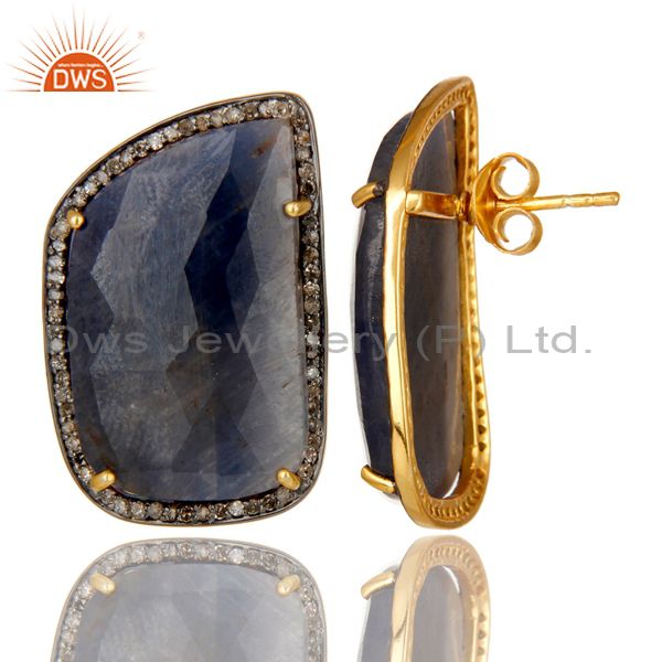 Pave Diamond And Blue Sapphire Stud Earrings In 18K Gold Over Sterling Silver
