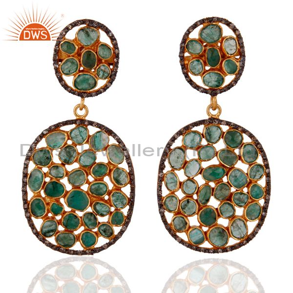 Pave Diamond Emerald Dangle Earrings Jewelry 18k Gold GP 925 Sterling Silver
