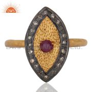 Pave Diamond Genuine Emerald 18K Gold Over 925 Sterling Silver Ruby Drop Earring