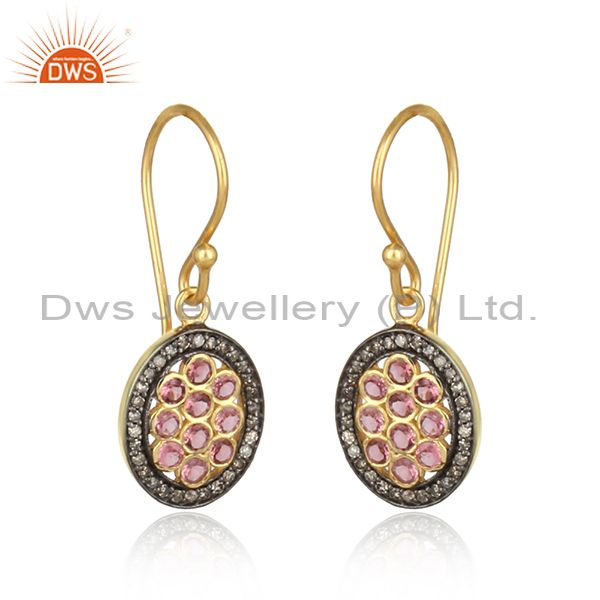 Pave Diamond Pink Tourmailne Designer Dangle in Yellow Gold on Silver