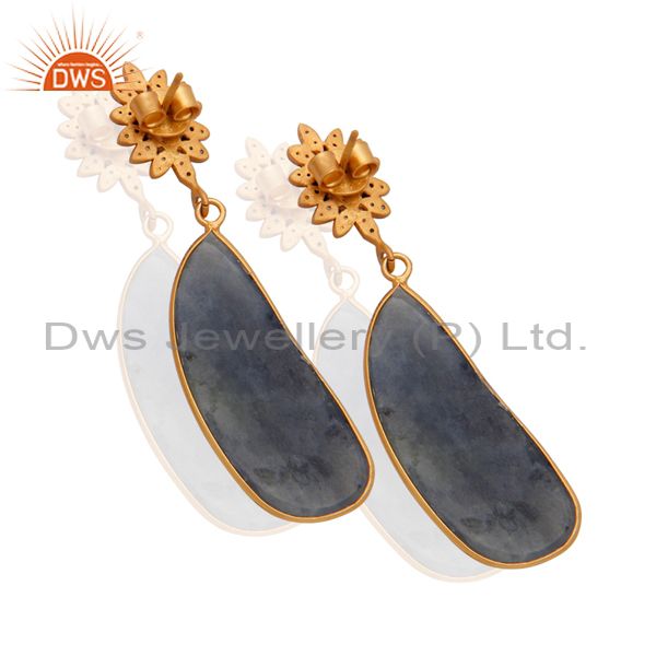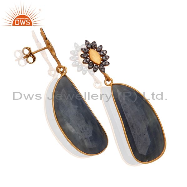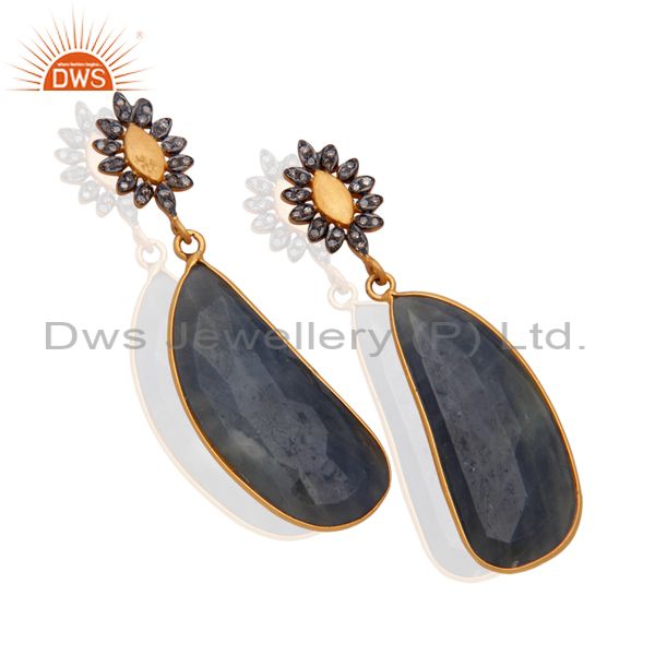 Pave Diamond Sapphire Slice Gemstone 18k Gold On Sterling Silver Dangle Earrings
