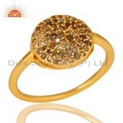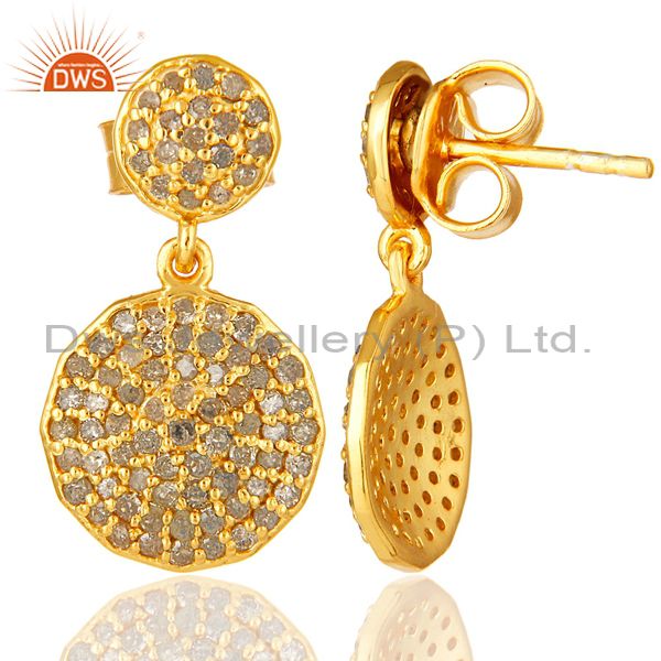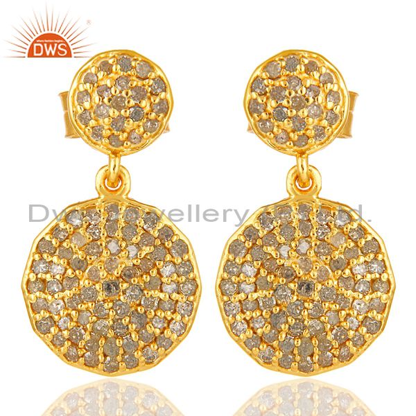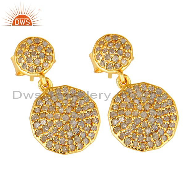 Pave Set Diamond Disc Dangle Earrings Made In 14K Yellow Gold On Sterling Silver
