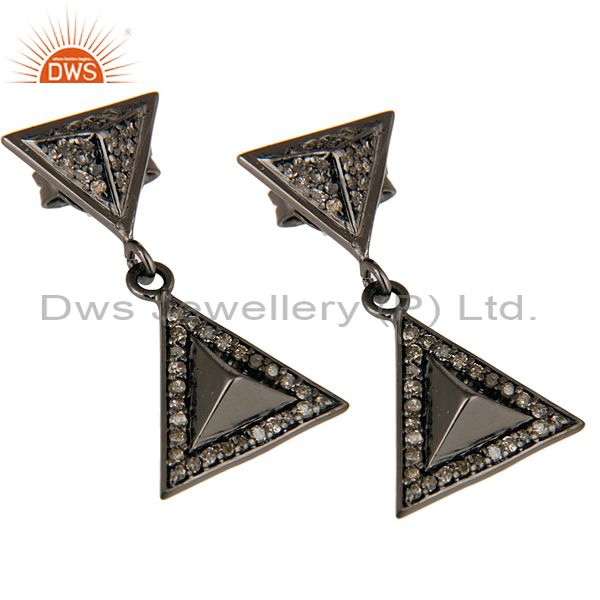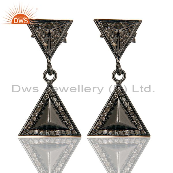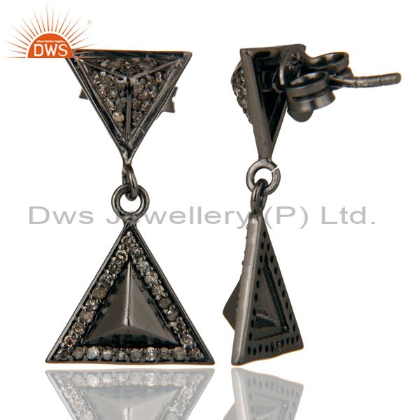 Pave Setting Diamond Oxidized Sterling Silver Pyramid Dangle Drop Earring