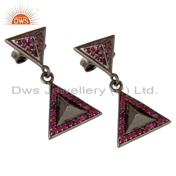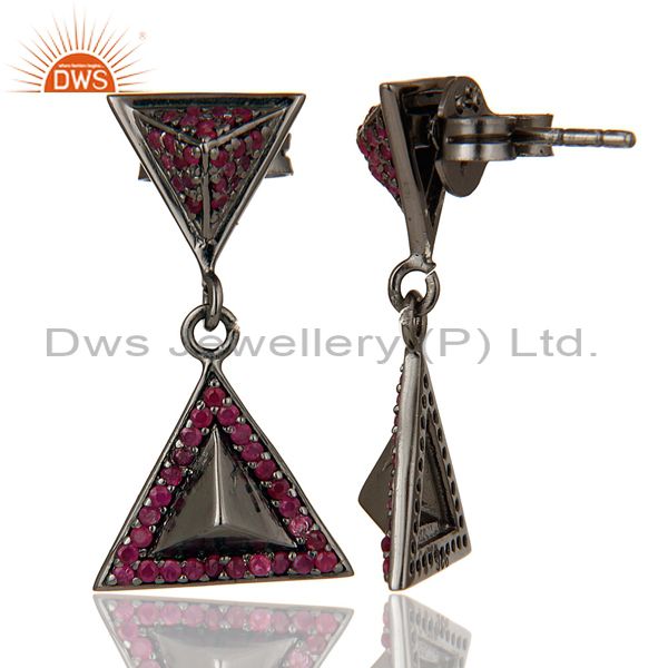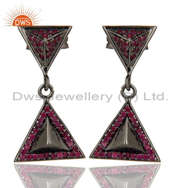 Pave Setting Ruby Oxidized Sterling Silver Pyramid Dangle Drop Earring