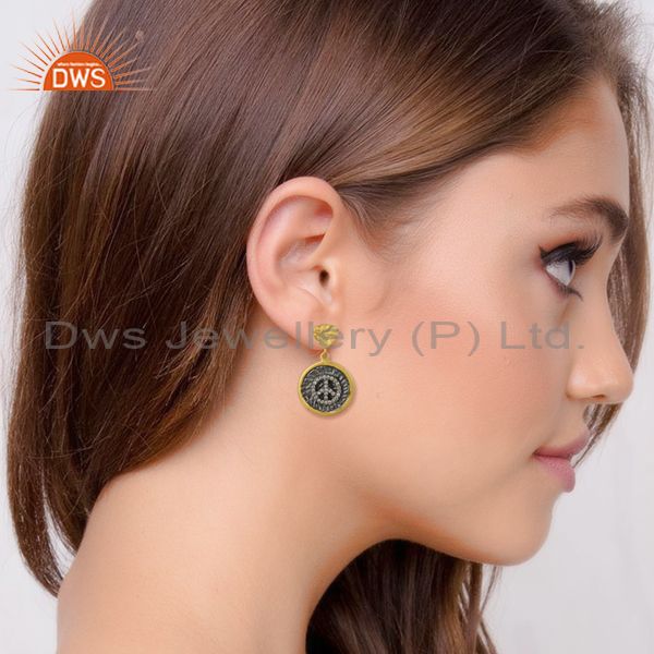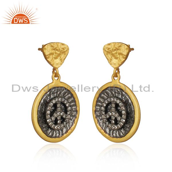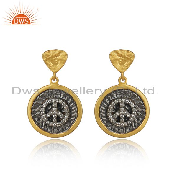 Peace Sign Rhodium and Gold on Silver Zircon Earrings