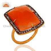 Peach Moonstone & White Zircon 14K Gold Plated 925 Sterling Silver Stud Earrings