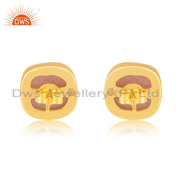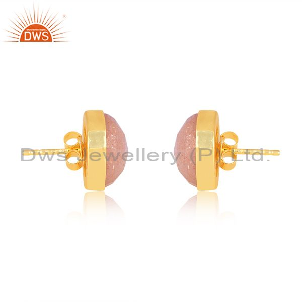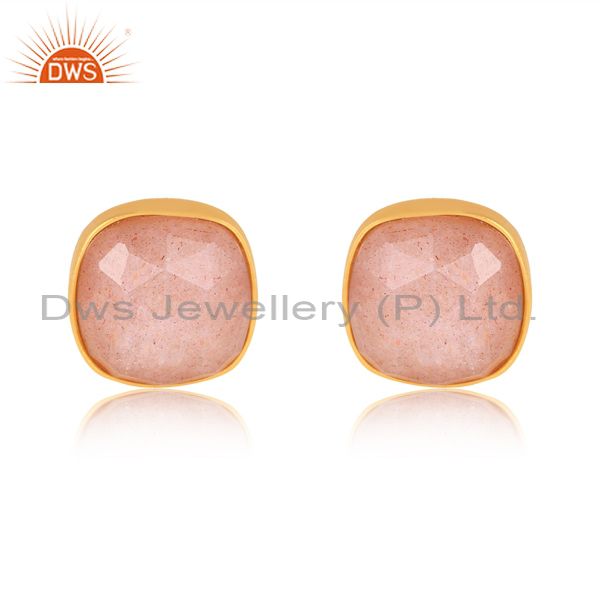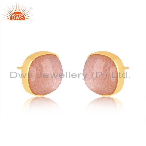 Peach Moonstone Set 18K Gold On 925 Sterling Silver Earrings