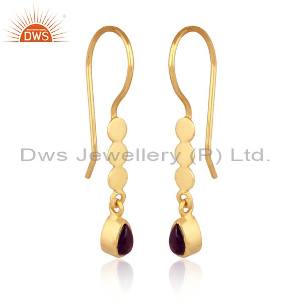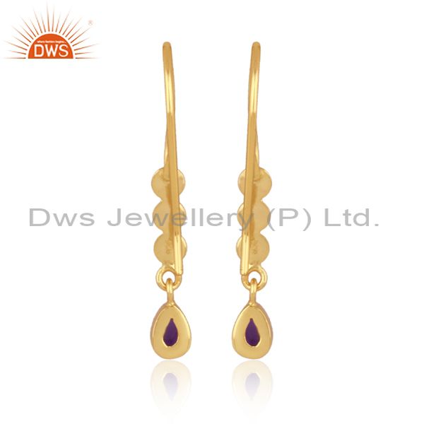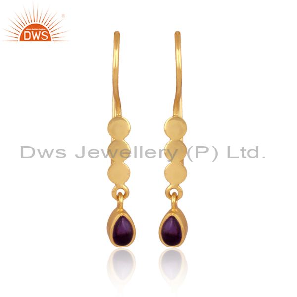 Pear Cut Amethyst Set Gold On 925 Silver Long Drop Earring