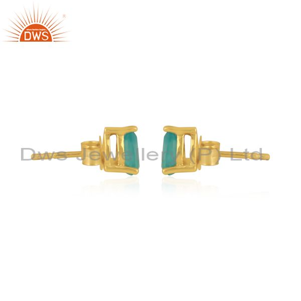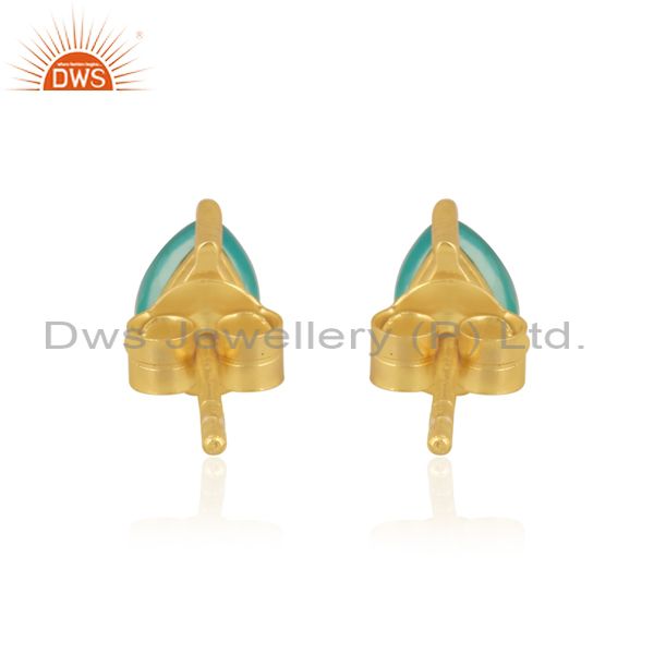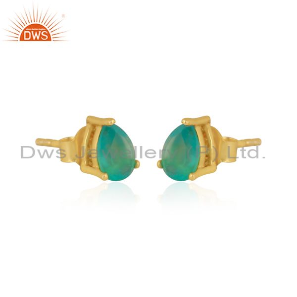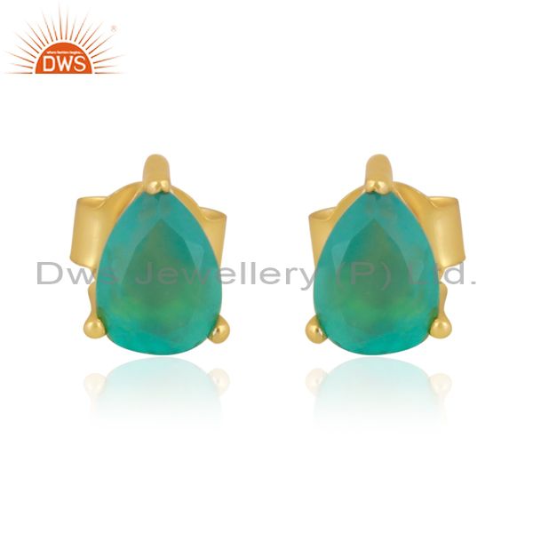 Pear Cut Aqua Chalcedony Set Gold On 925 Silver Earrings