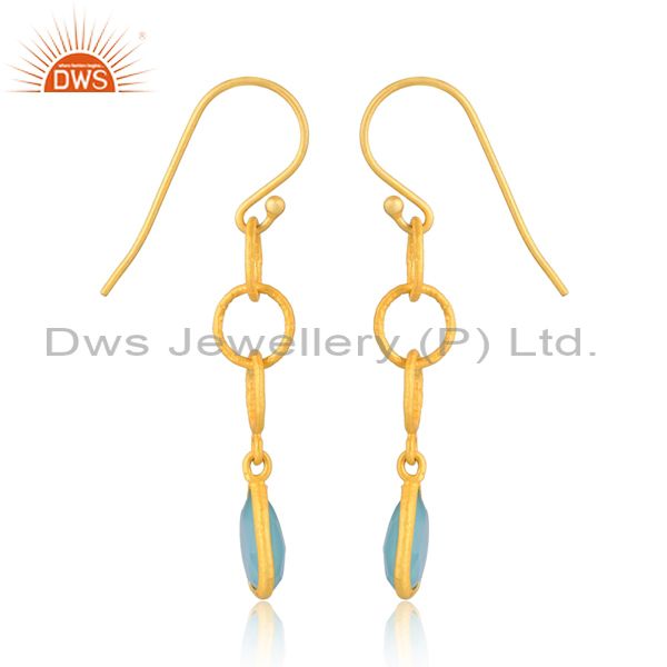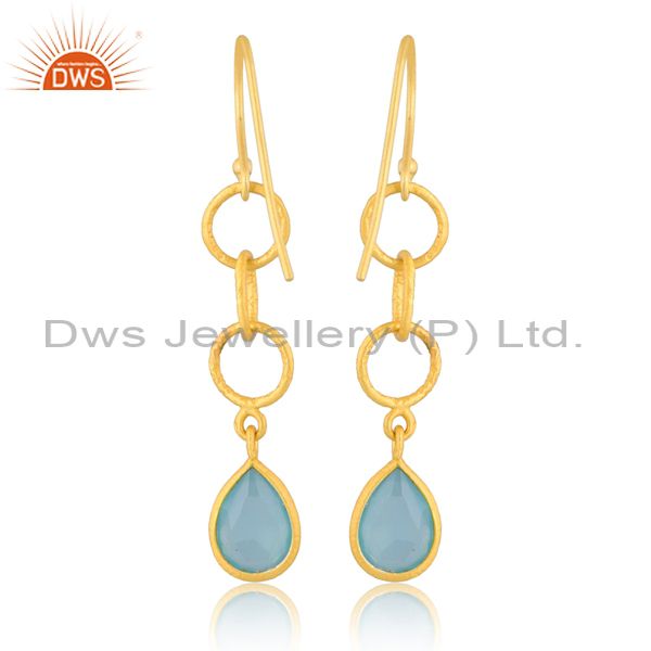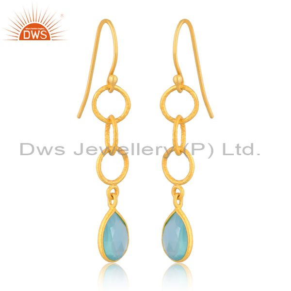 Pear Cut Aqua Chalcedony Set Gold On925 Silver Earrings