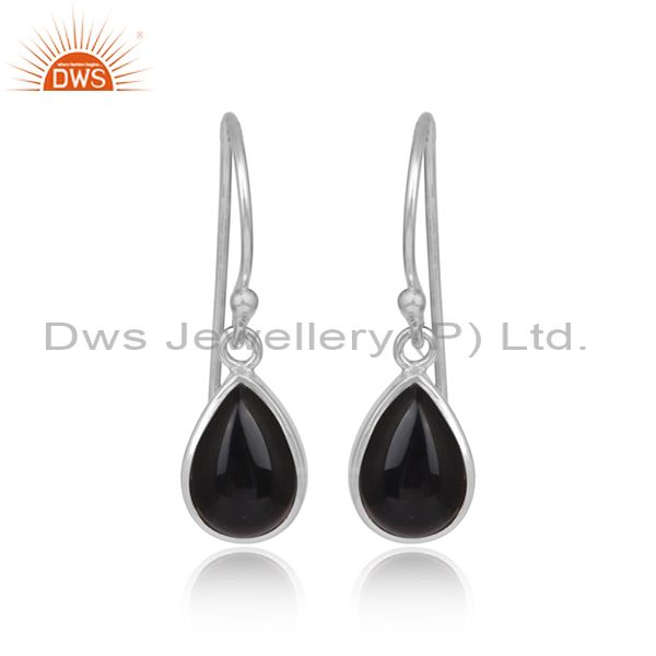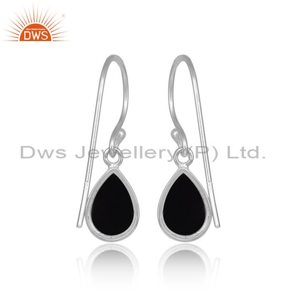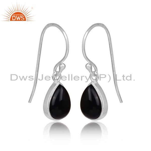 Pear Cut Black Onyx Fine Sterling Silver Earwire Earrings