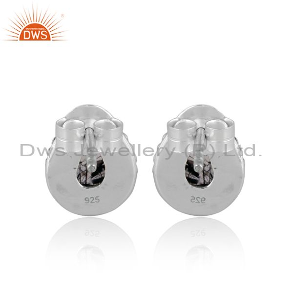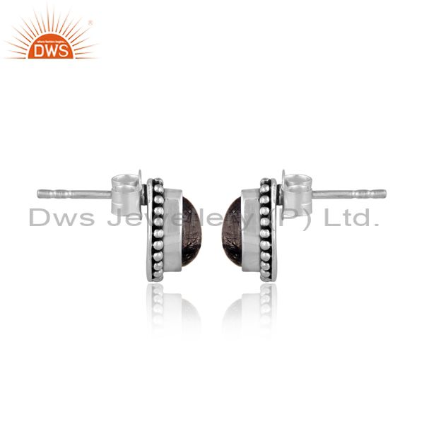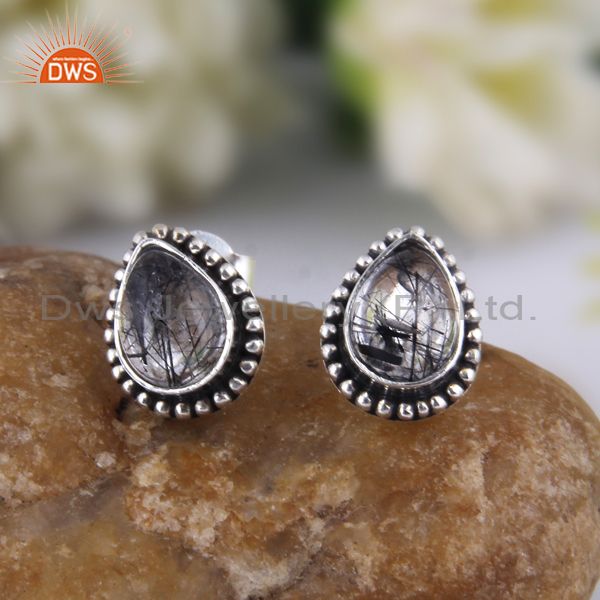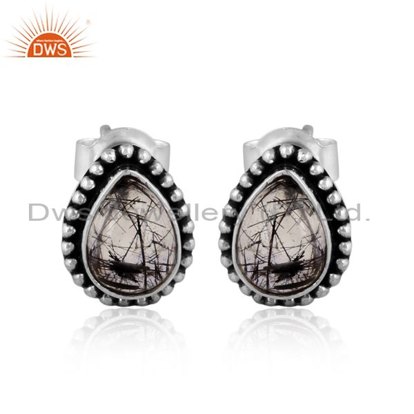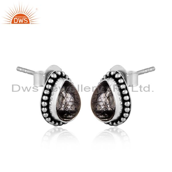 Pear Cut Black Rutile Oxidized Silver Ethnic Design Earrings