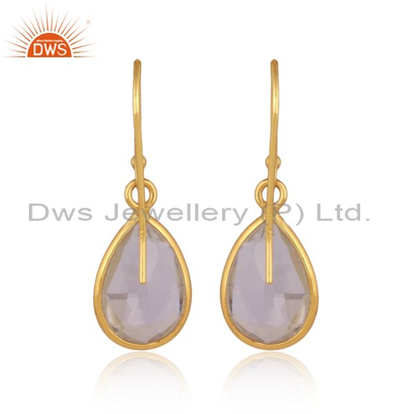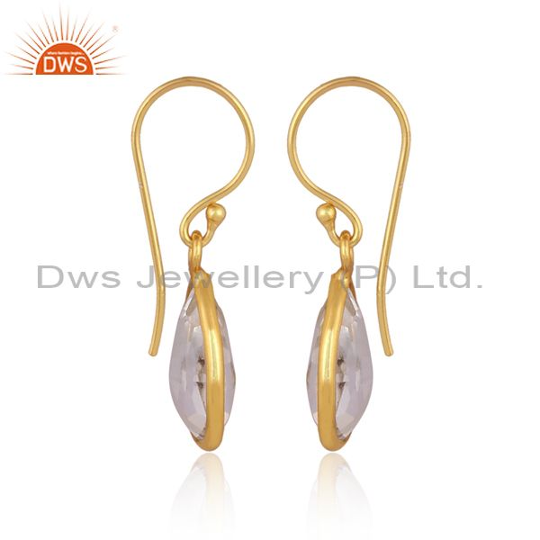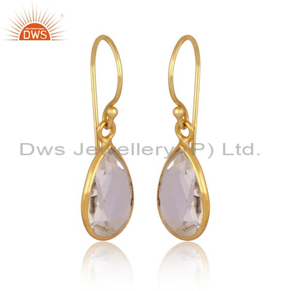 Pear Cut Crystal Quartz Set Gold On Silver Earwire Earrings
