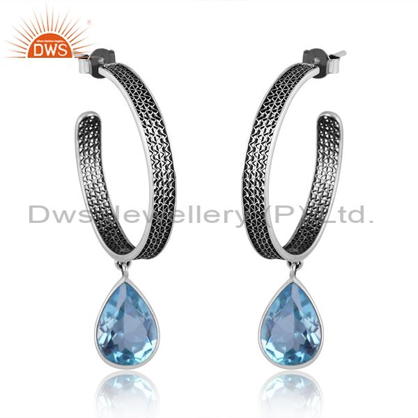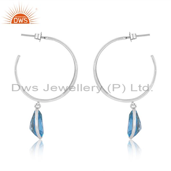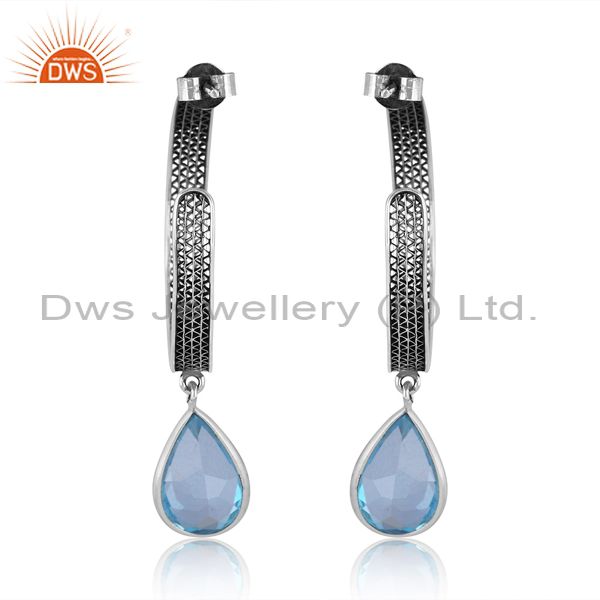 Pear Cut Doublet Aquamarine Quartz Set Fine Silver Earrings