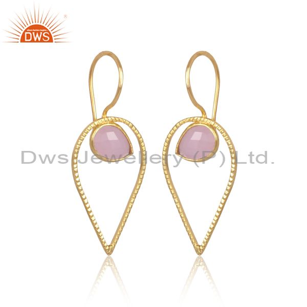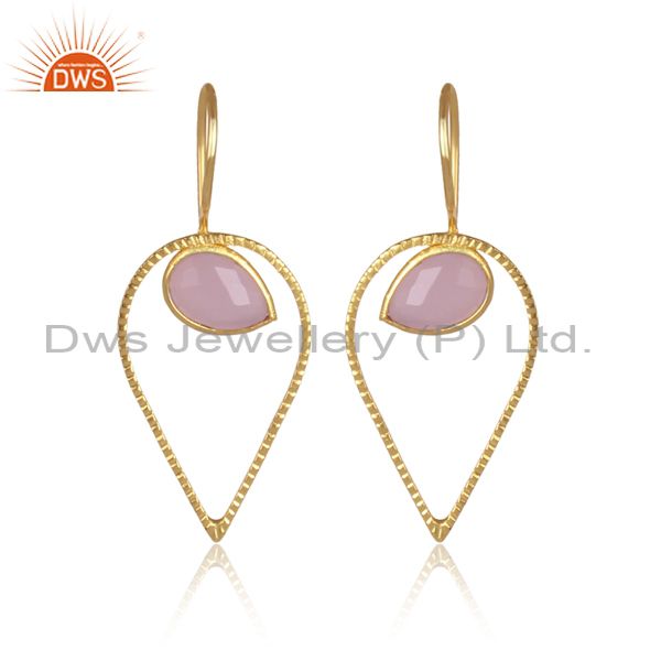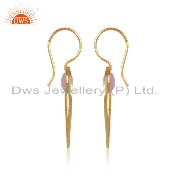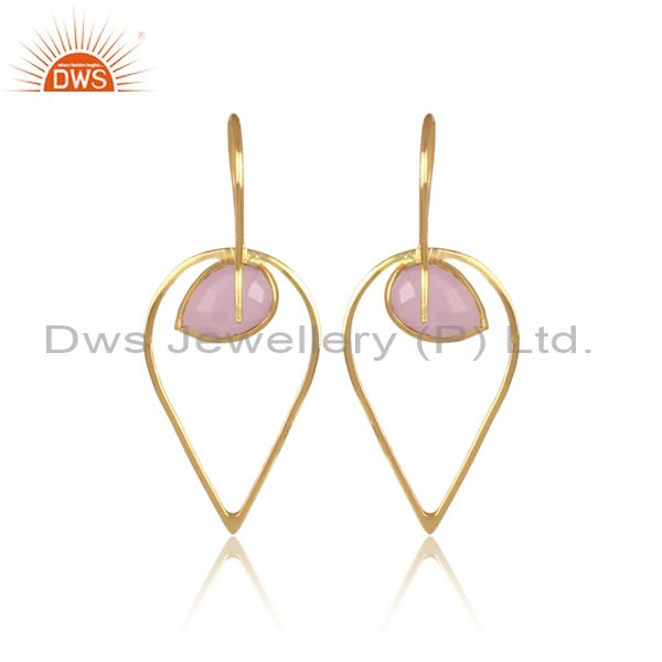 Pear Cut Glass Rose Set Oval Statement Brass Gold Earrings