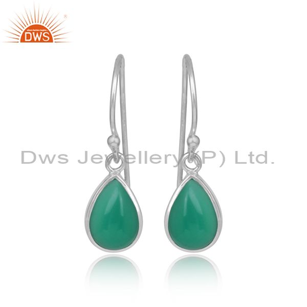 Pear Cut Green Onyx Set Fine 925 Silver Earwire Earrings