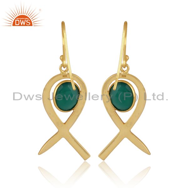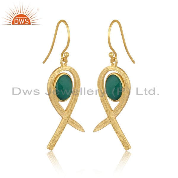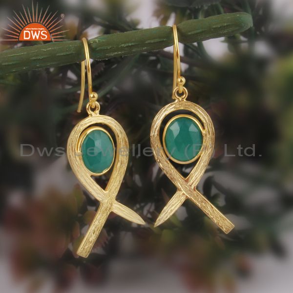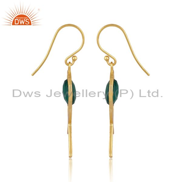 Pear Cut Green Onyx Set Gold On 925 Silver Earwire Earrings