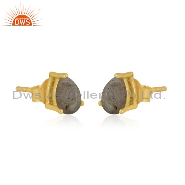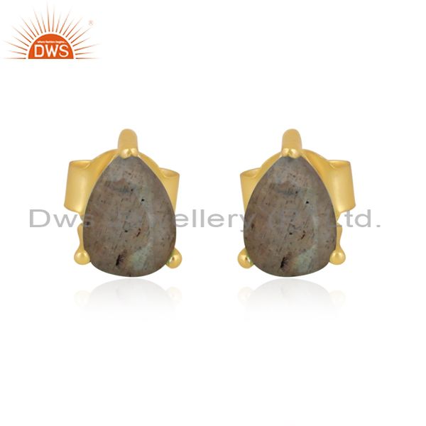 Pear Cut Labradorite Gold On Sterling Silver Earrings