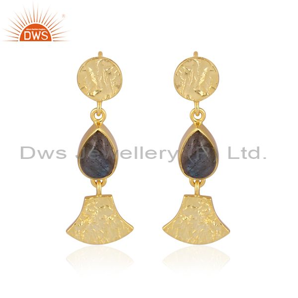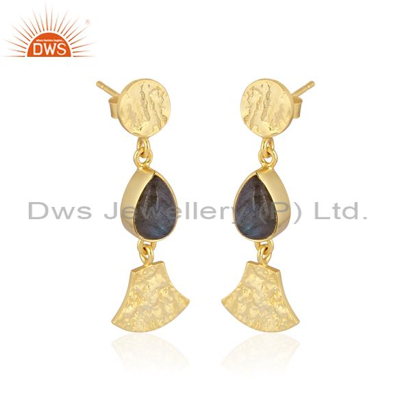 Pear Cut Labradorite Set Gold On 925 Silver Drop Earrings