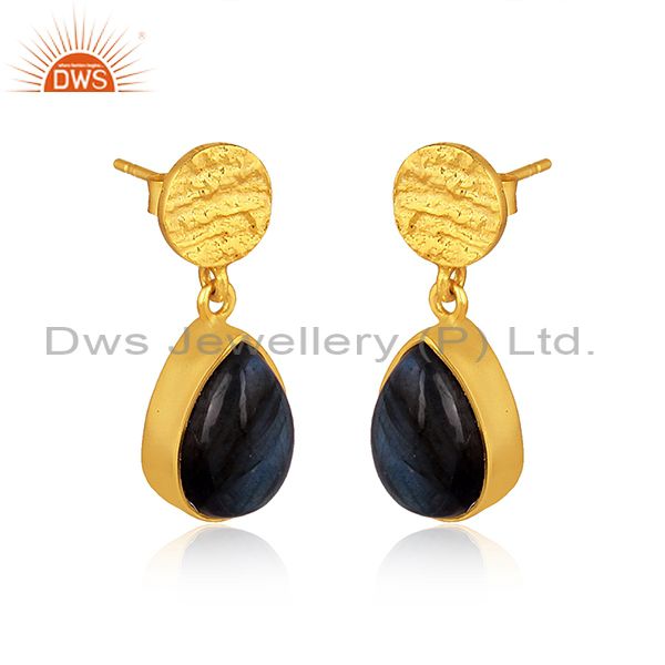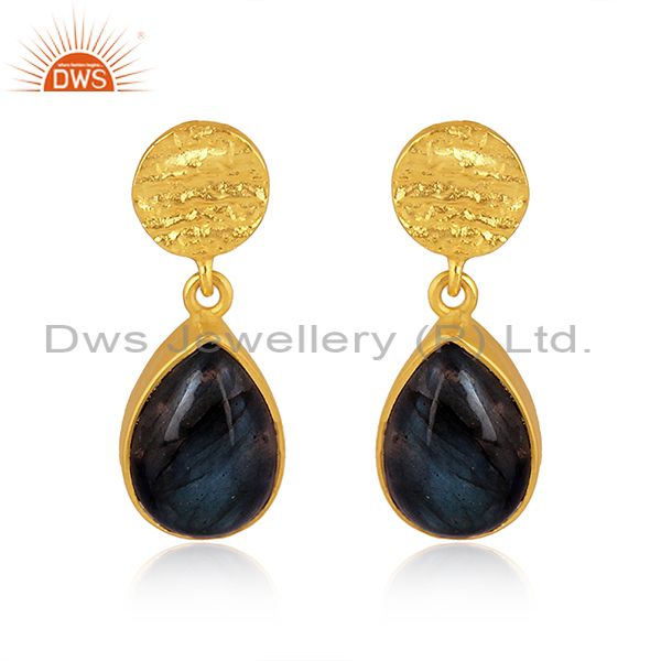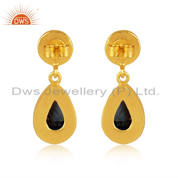 Pear Cut Labradorite Set Gold On Sterling Silver Earrings