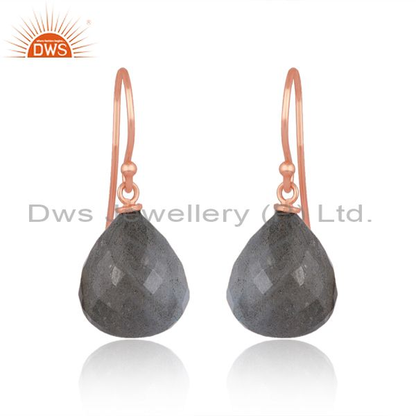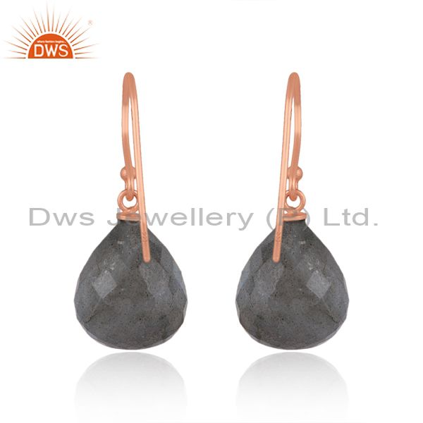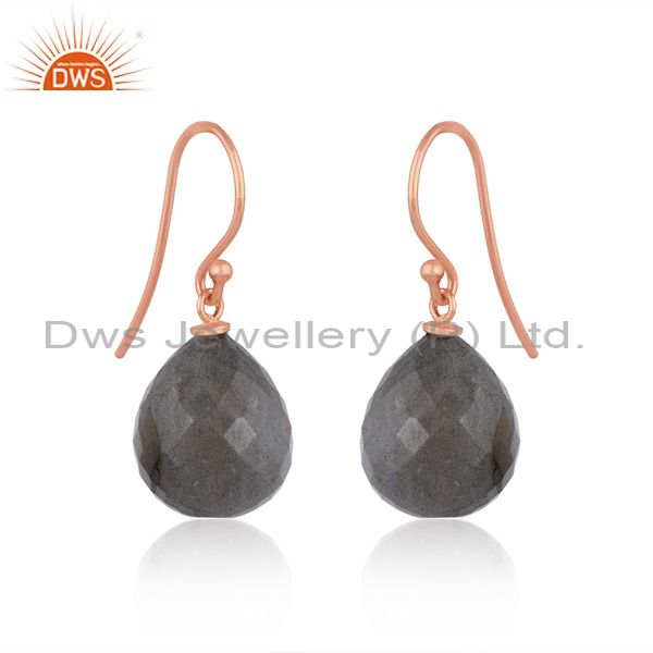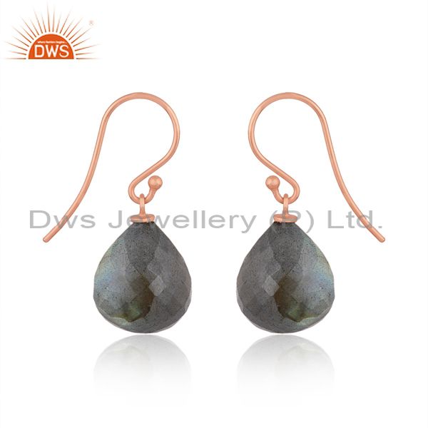 Pear Cut Labradorite Set Rose Gold On 925 Silver Earrings