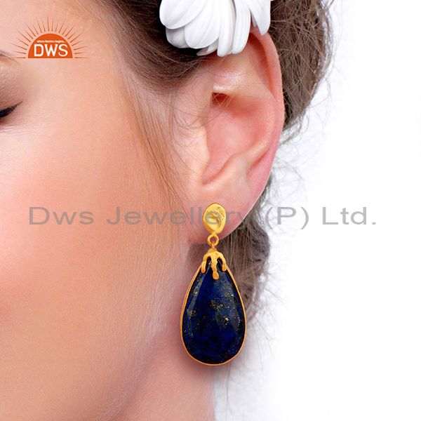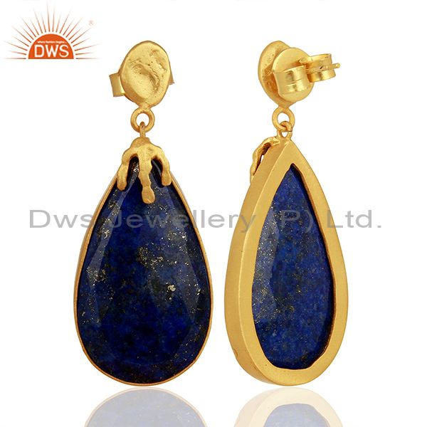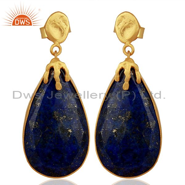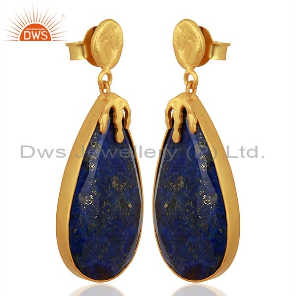 Pear Cut Lapis Set 18K Brass Gold Handmade Drop Earrings