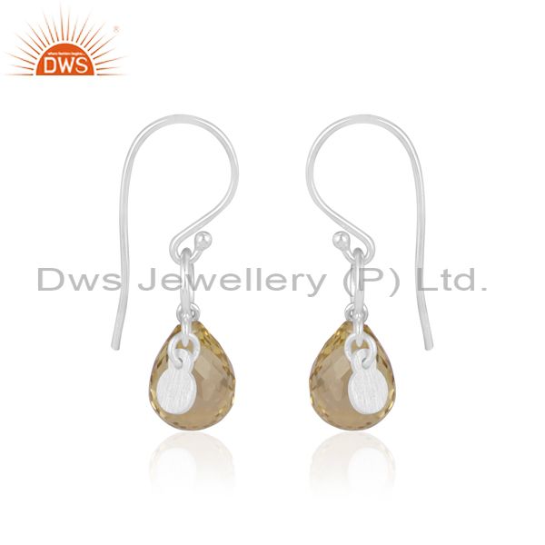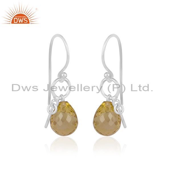 Pear cut lemon topaz set fine 925 silver earwire earrings