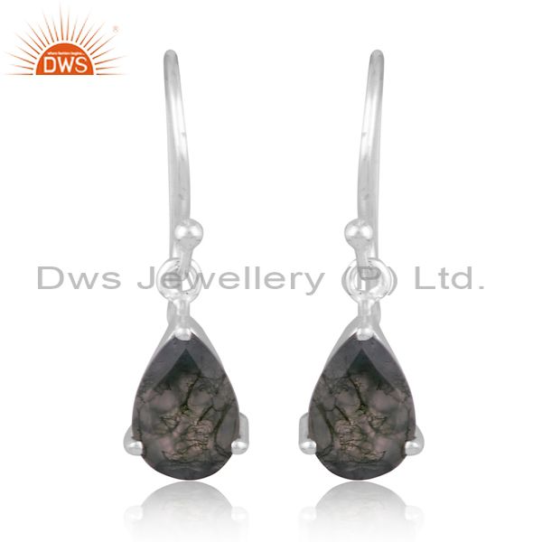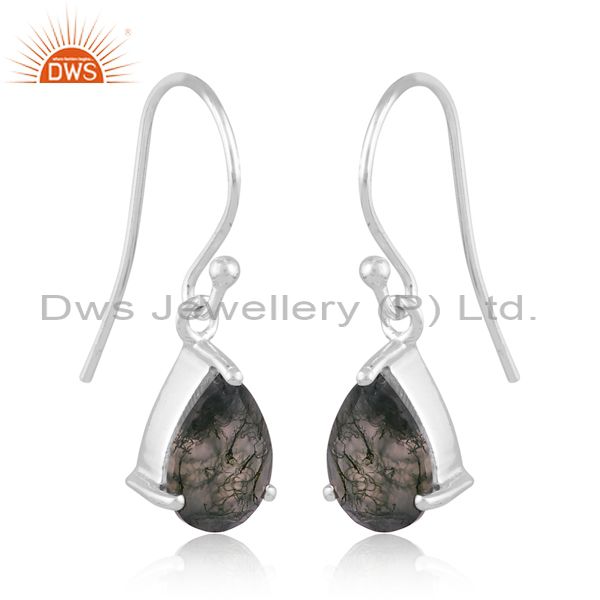 Pear Cut Moss Agate Set Fine 925 Sterling Silver Earrings