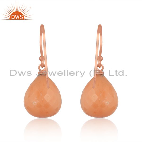 Pear Cut Pink Amazonite Set Rose Gold On 925 Silver Earrings