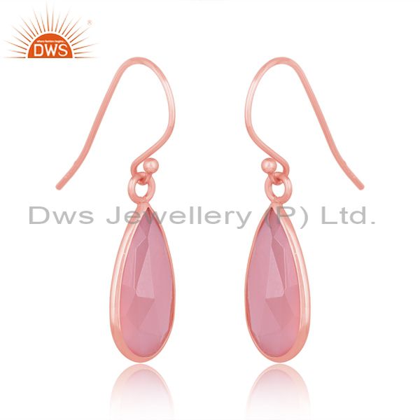 Pear Cut Pink Opal Set Rose Gold On Sterling Silver Earrings