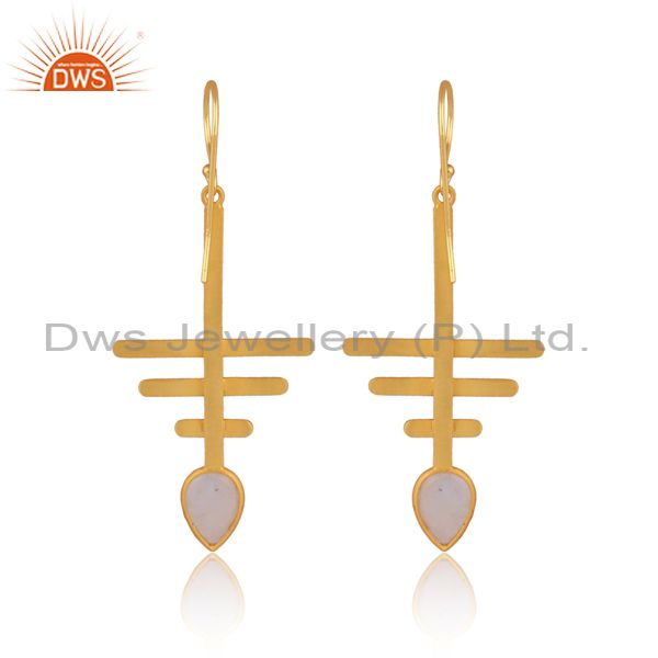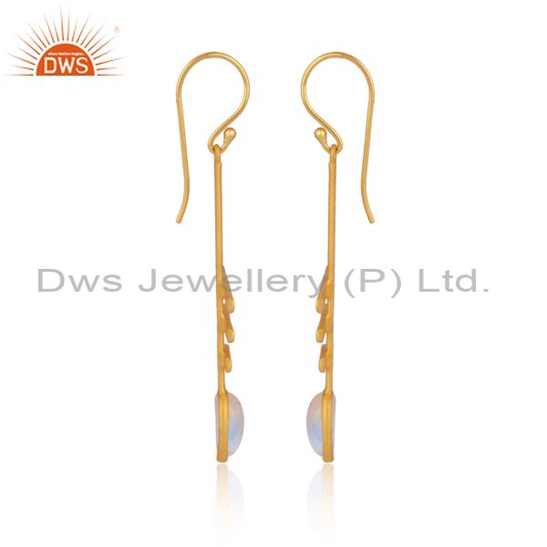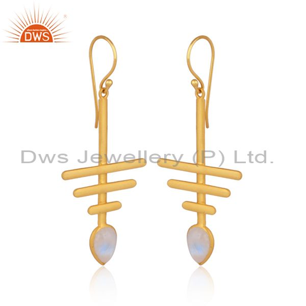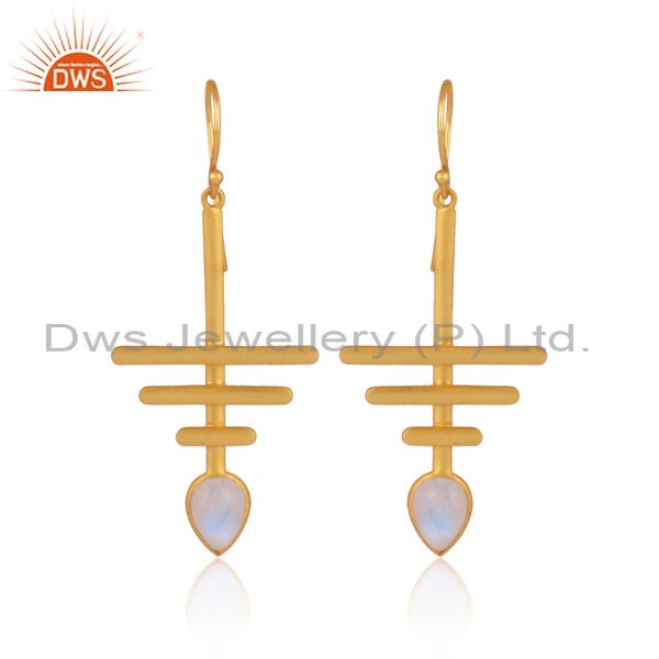 Pear cut rainbow moon stone gold on 925 silver earrings