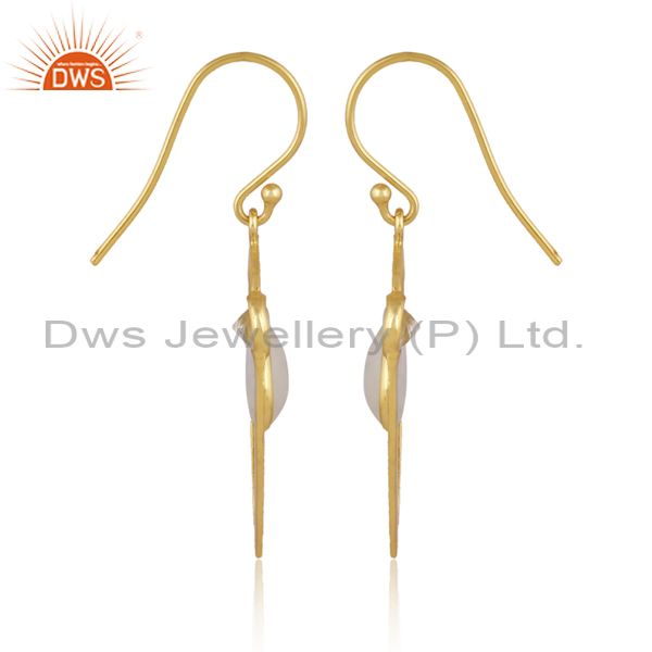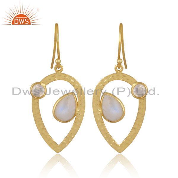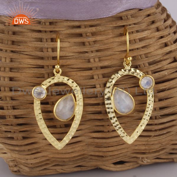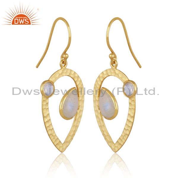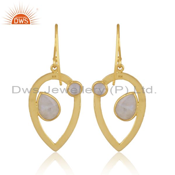 Pear Cut Rainbow Moonstone Gold On 925 Silver Earring