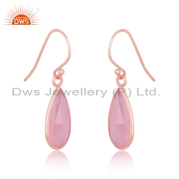 Pear Cut Rose Chalcedony Set Rose Gold On Silver Earrings