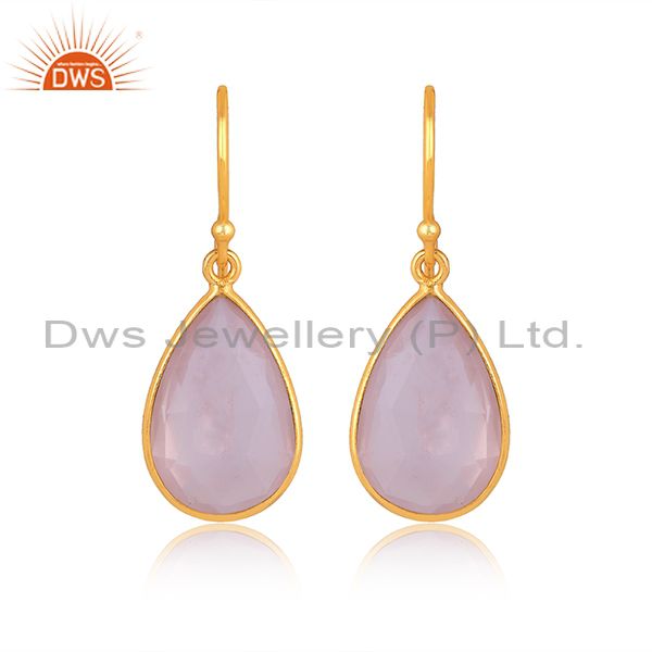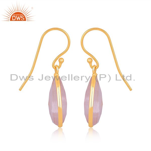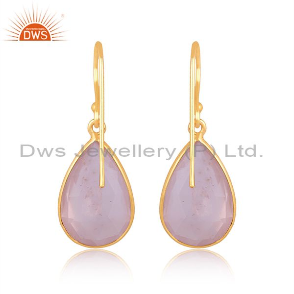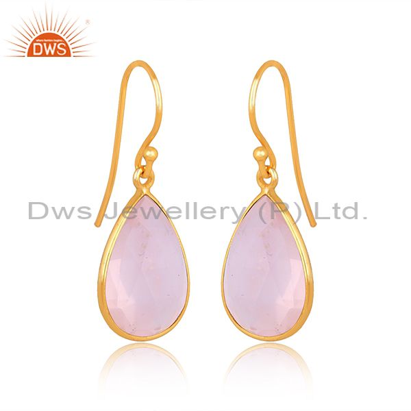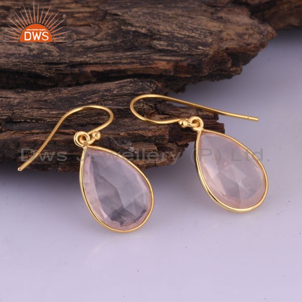 Pear Cut Rose Quartz Set Gold On 925 Silver Earwire Earrings