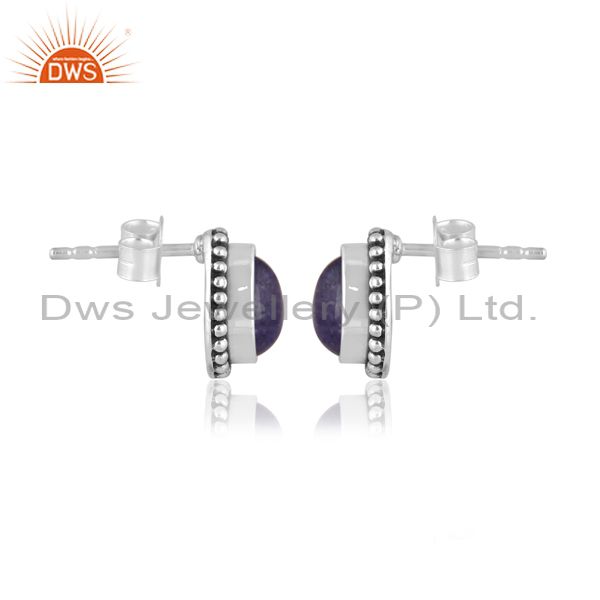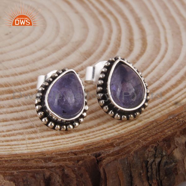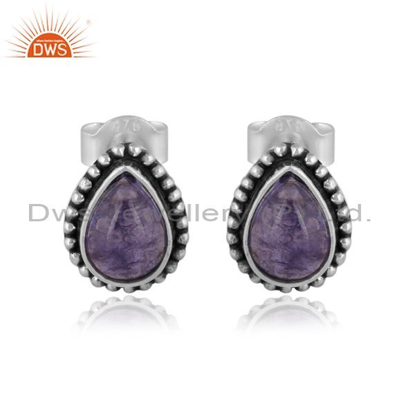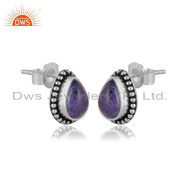 Pear Cut Tanzanite Oxidized Silver Ethnic Design Earrings