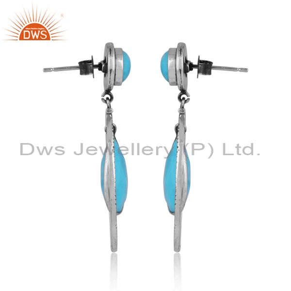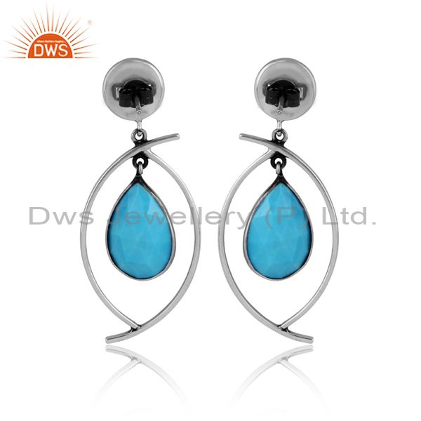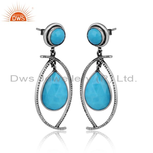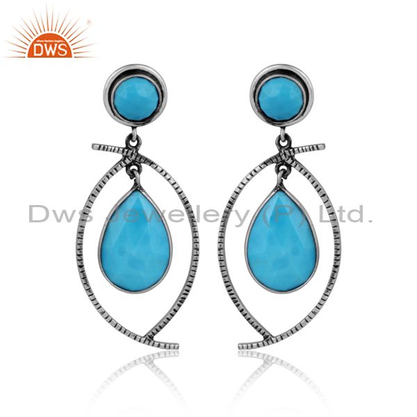 Pear Cut Turquoise Set Oxidized Silver Oval Hoop Earrings