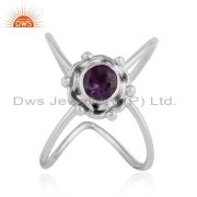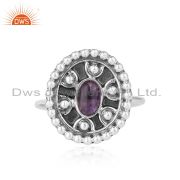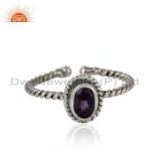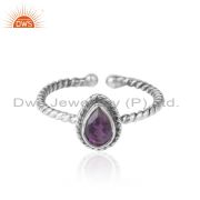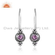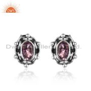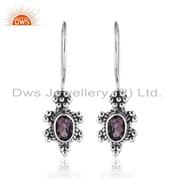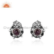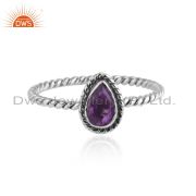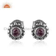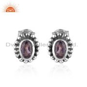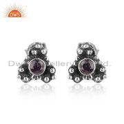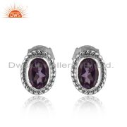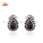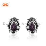 Pear Shape Amethyst Gemstone Oxidized 92.5 Silver Stud Earrings