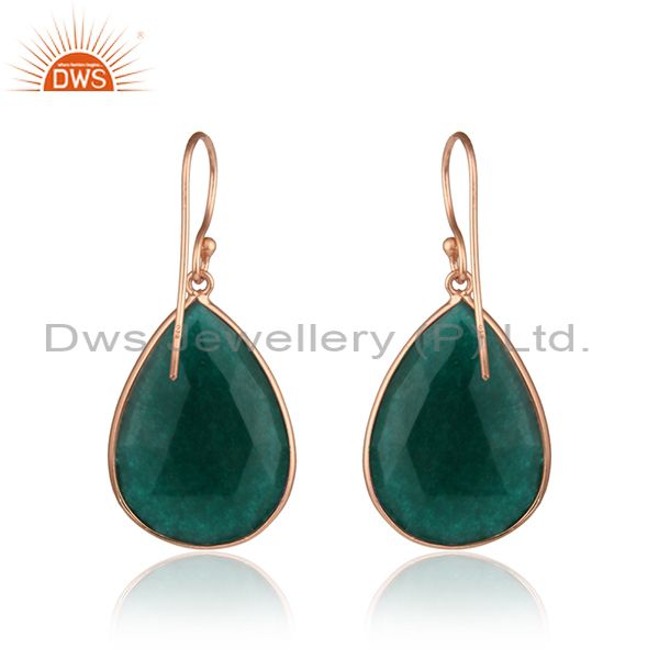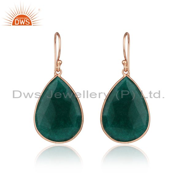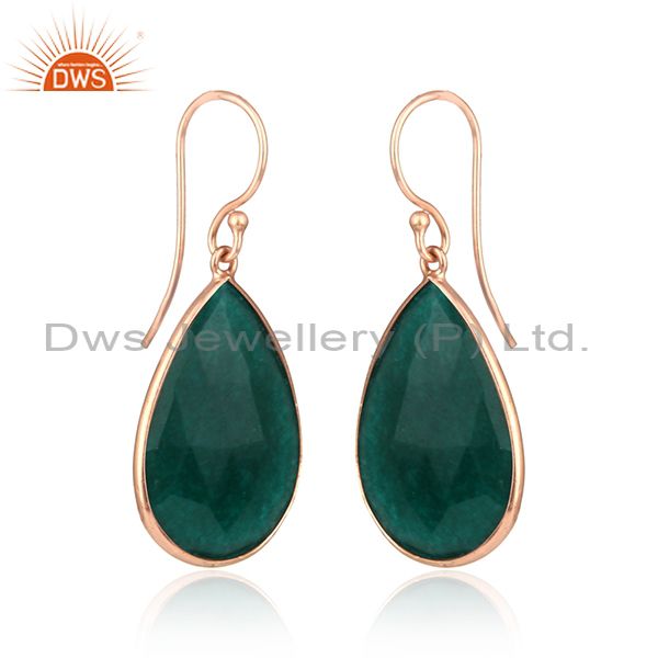 Pear Shape Dyed Emerald Rose Gold Plated Silver Tear Drop Earring