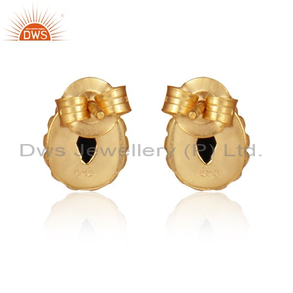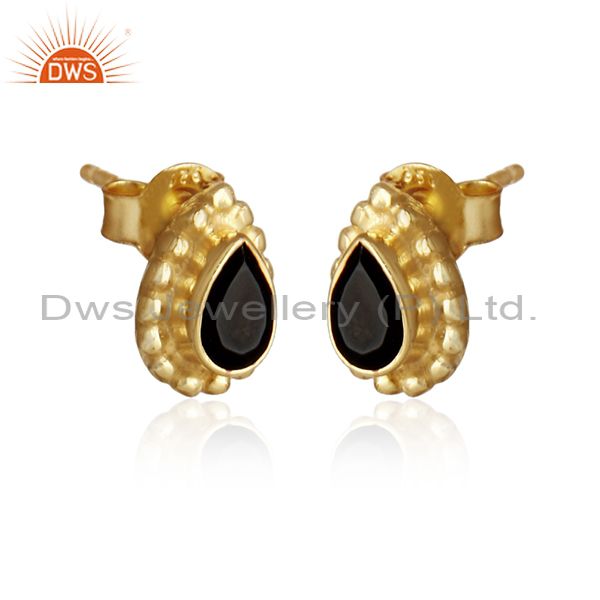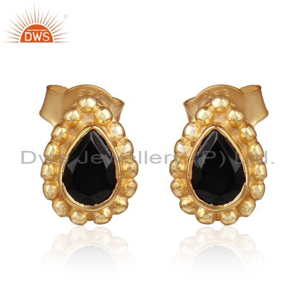 Pear Shape Gold Plated Silver Natural Black Onyx Gemstone Earrings