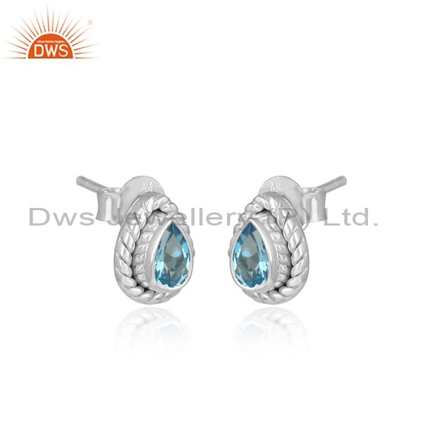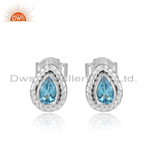Pear Shape Sterling Silver Natural Blue Topaz Stud Earring
