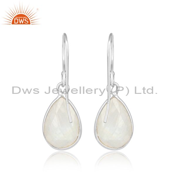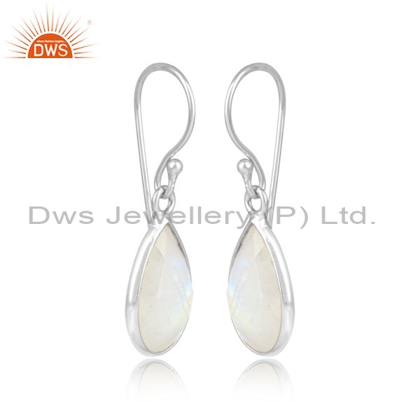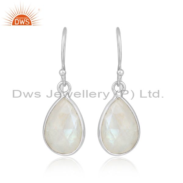 Pear Shaped Rainbow Moon Stone Set Fine 925 Silver Earrings