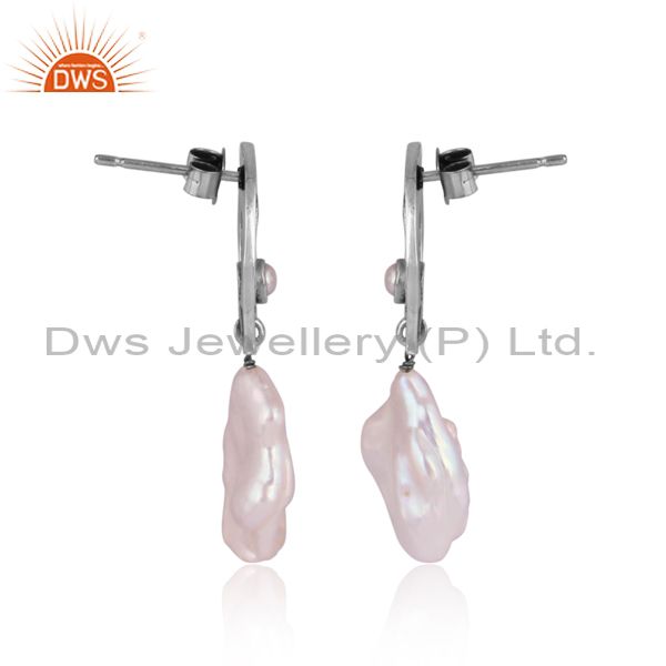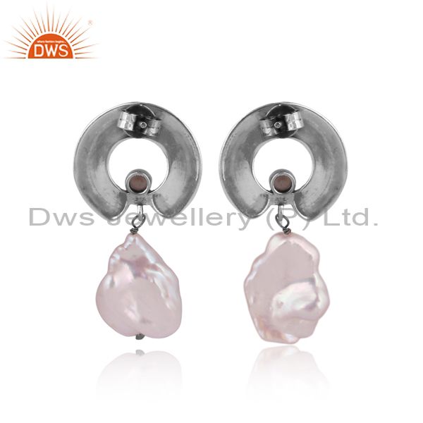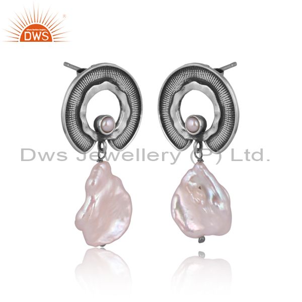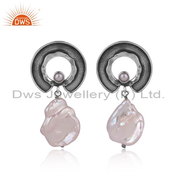 Pearl And Fresh Water Pearl Set Oxidized 925 Silver Earrings