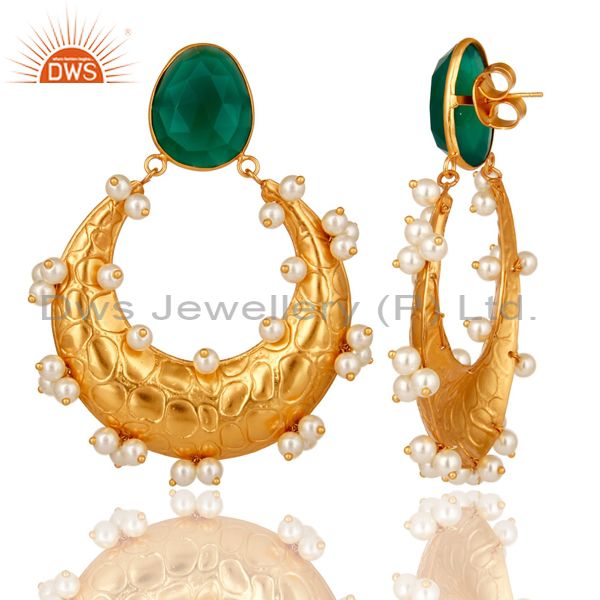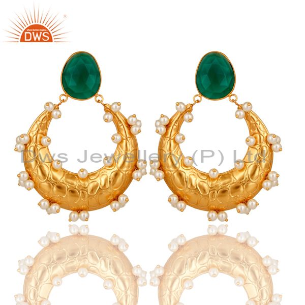 Pearl and Green Onyx 18K Gold Plated Dangler Earring Indian Traditional Earring