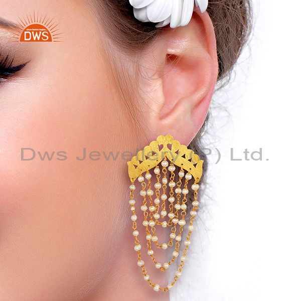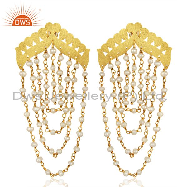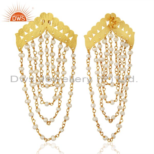 Pearl Chandelier 18K Gold Plated 925 Sterling Silver Earrings Jewelry