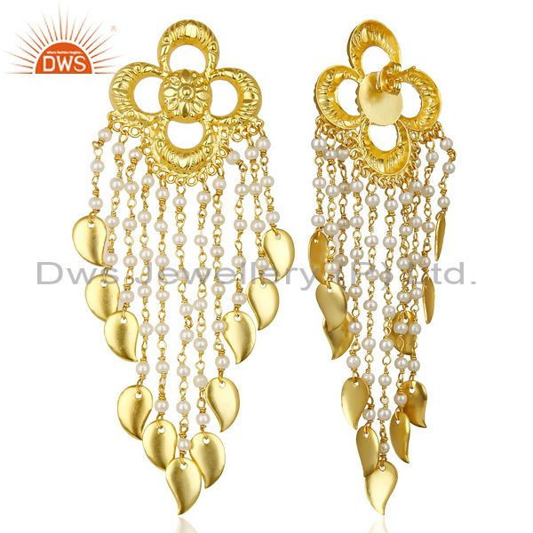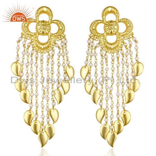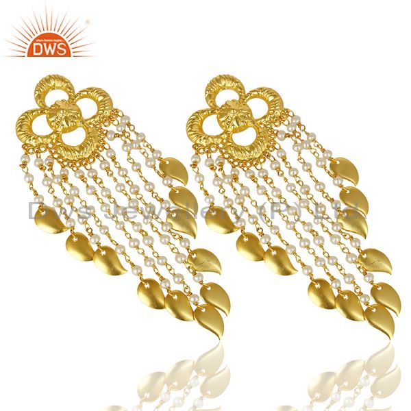 Pearl Chandelier 18K Gold Plated Sterling Silver Earrings Traditional Jewelry