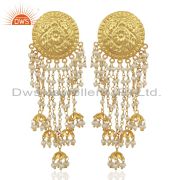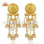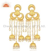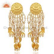 Pearl Chandelier 18K Gold Plated Sterling Silver Traditional Earrings Jewelry